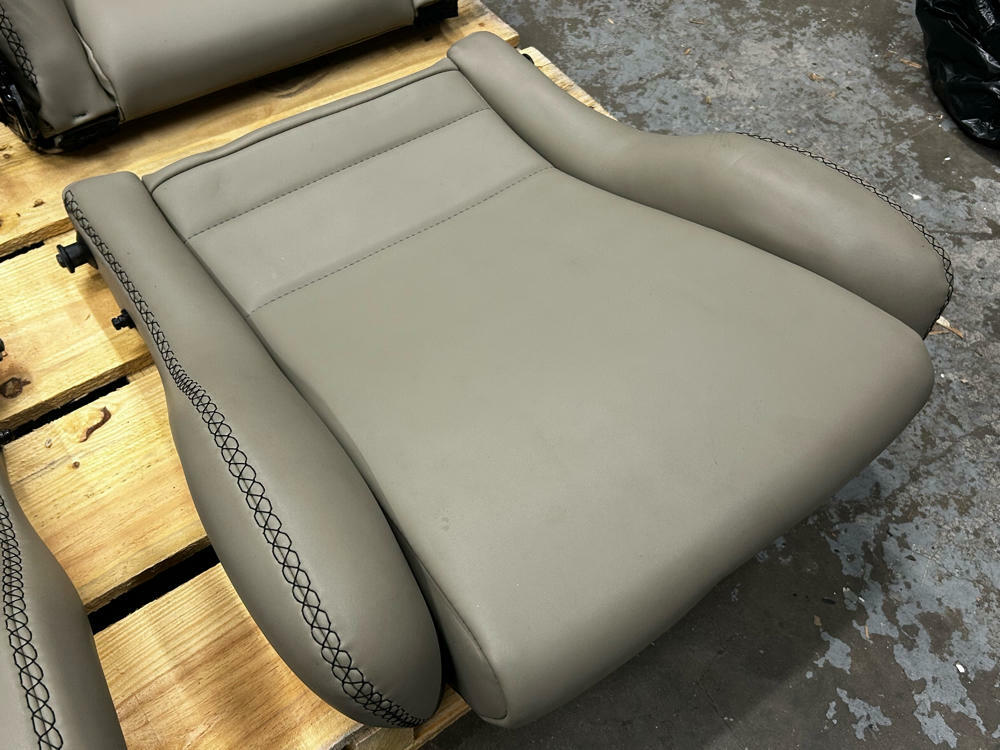 NOTE: Extremely nice shape given the age! These were retrimmed not too long ago and have sat in storage in the personal collection for a bit. Includes everything shown in the pics; they speak for themselves as to the condition of the seats. Extra matching material included at asking price for you to retrim your rears to match as well. NO RAILS! Highly desirable seats that don't pop up on the open market all too often; let alone in this nice of condition.