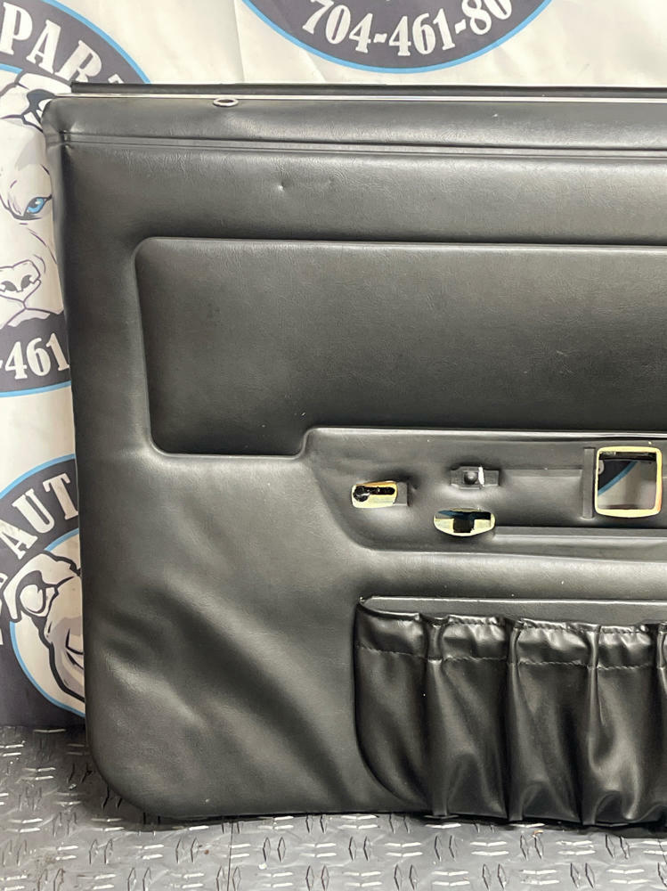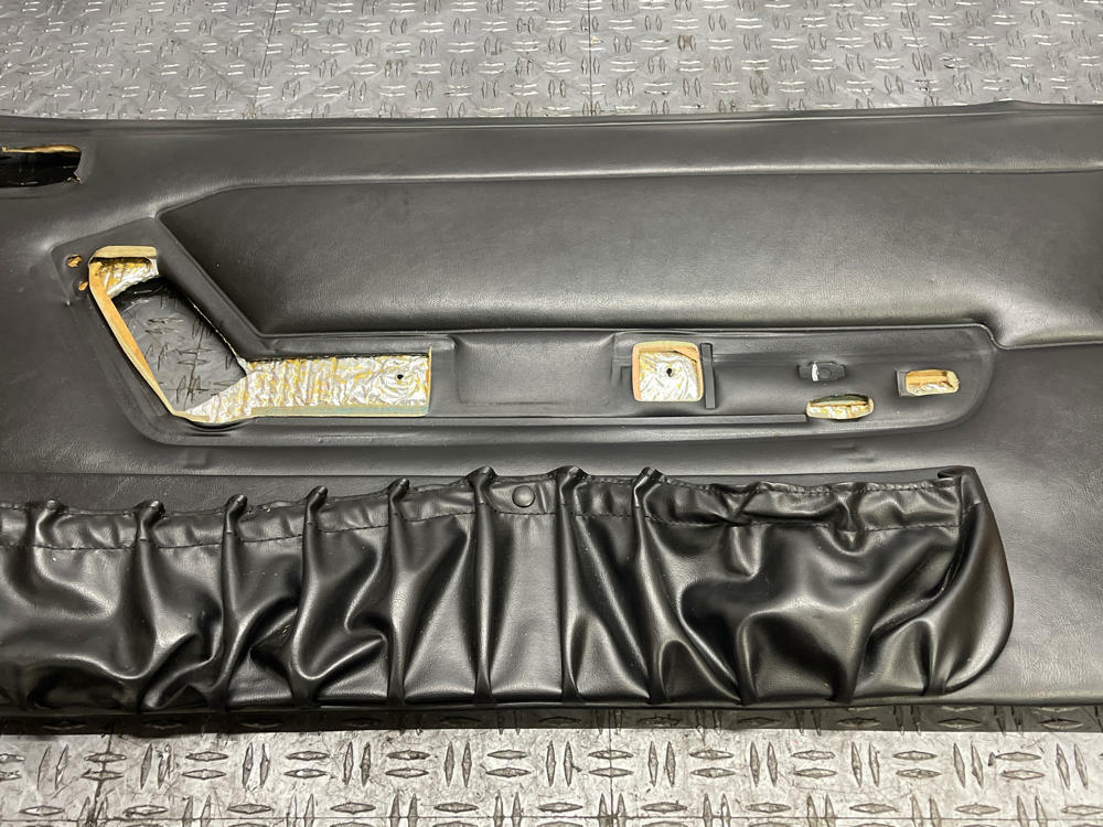 NOTE: Highly desirable OEM black door panels. Light lifting of drivers lower LH corner. See pics for more details. Very nice shape given the age! No rips, tears, burns, etc. Do unfortunately suffer from the well known map pocket sag issues. Have been home remedied w/ BBQ skewer stakes (LOL) but probably a more permanent solution to fix out there by now.