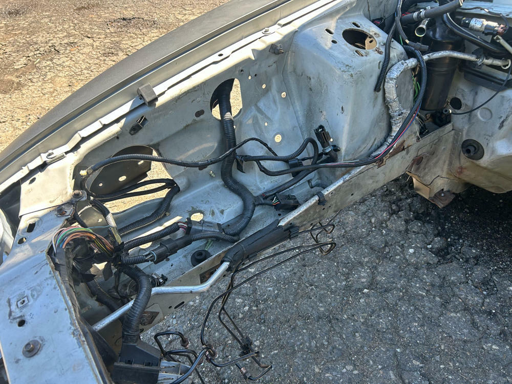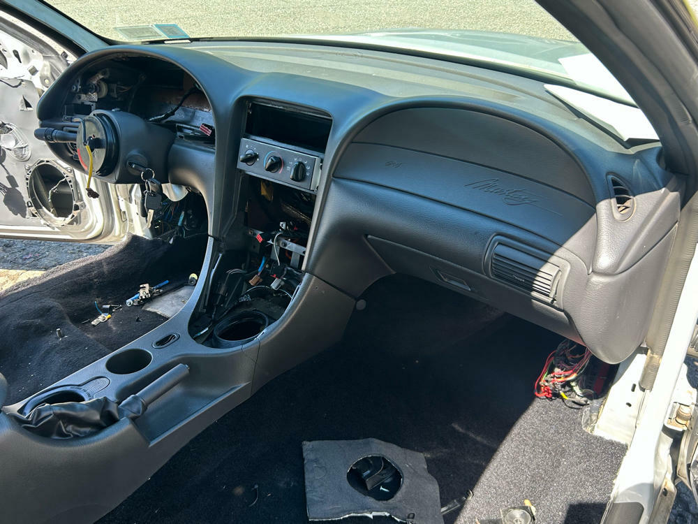Car was running a full 2003/04 SVT Cobra "Terminator" conversion at one point save the IRS & Harnesses (Had a built SRA & was piggybacked off GT harnesses/ECU). Has been stripped of virtually every single terminator specific piece. Still some solid parts left (partial interior, some harnesses, column w/ key, etc.) Have a repop '03/'04 Cobra front bumper w/ broken tabs that'll go with it.