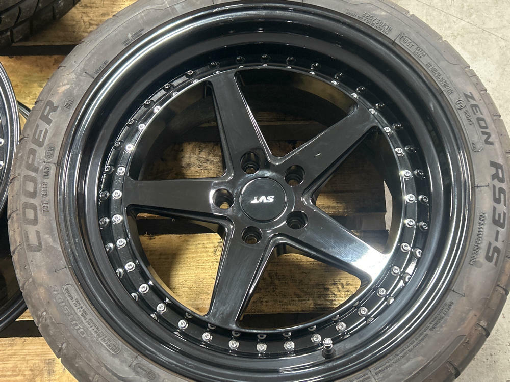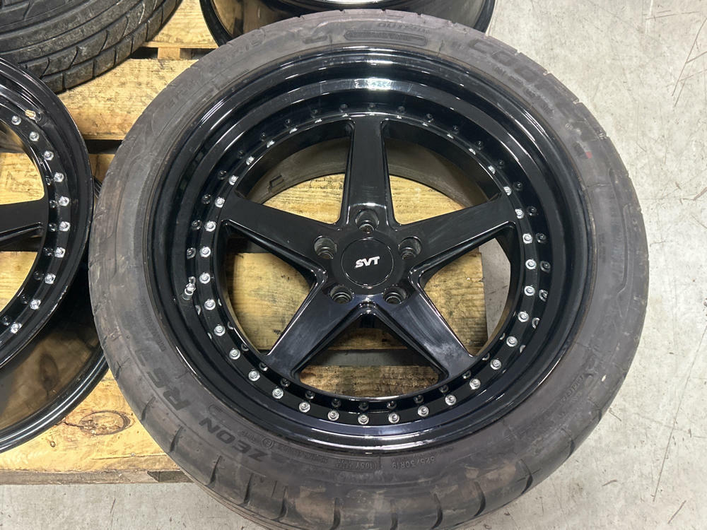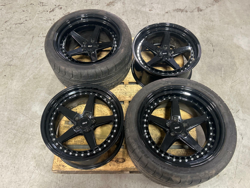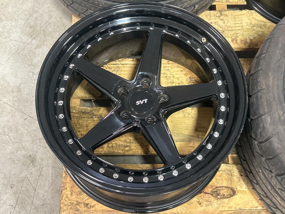 SVT Center caps are repops, NOT OEM, and are included in sale. Standard Mustang 5x114.3mm (5x4.5 inch) bolt pattern.