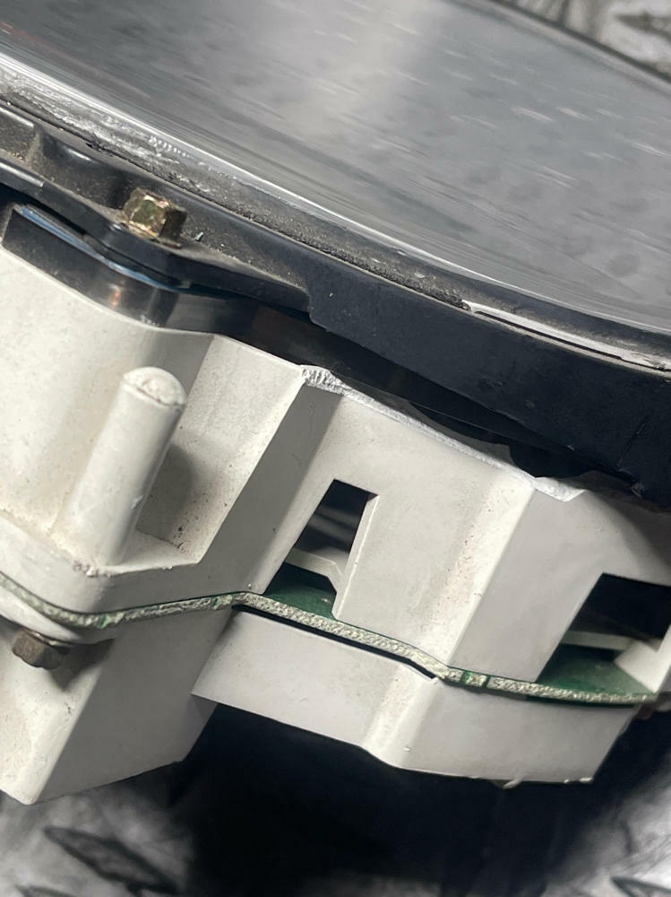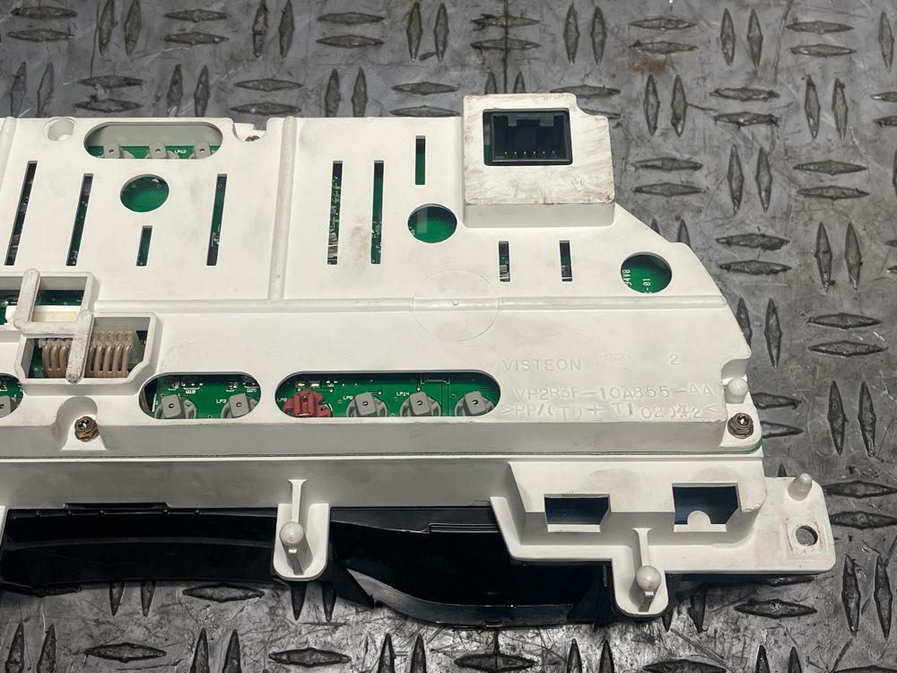 NOTE: Has broken mounting tab on top left hand driver side corner. Car took a hard hit to the front end and broke the dash in a few spots. Cluster still functions however! Boost gauge built into the cluster has a home made overlay on it for additional boost pressure. ALL OEM components