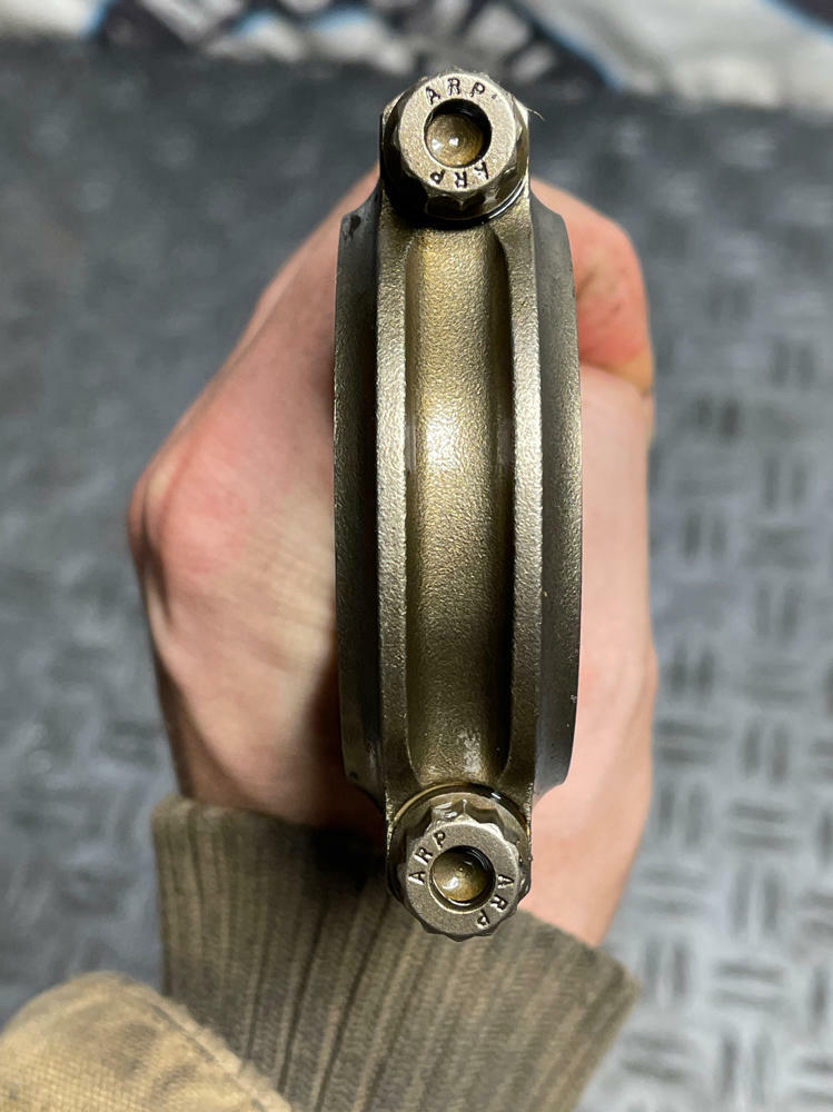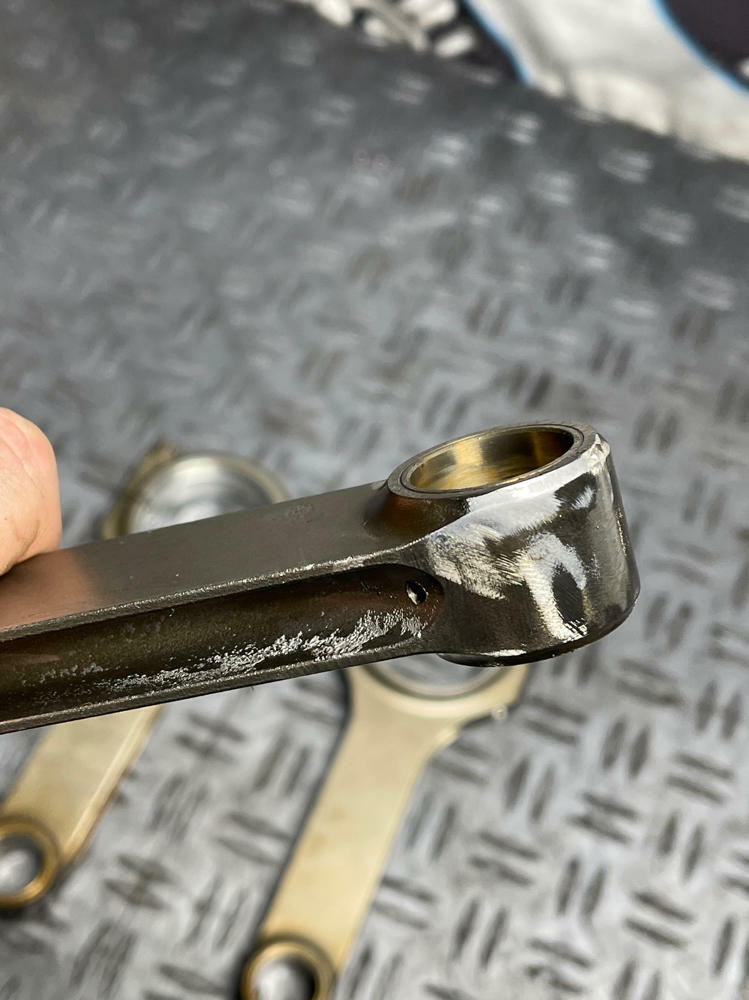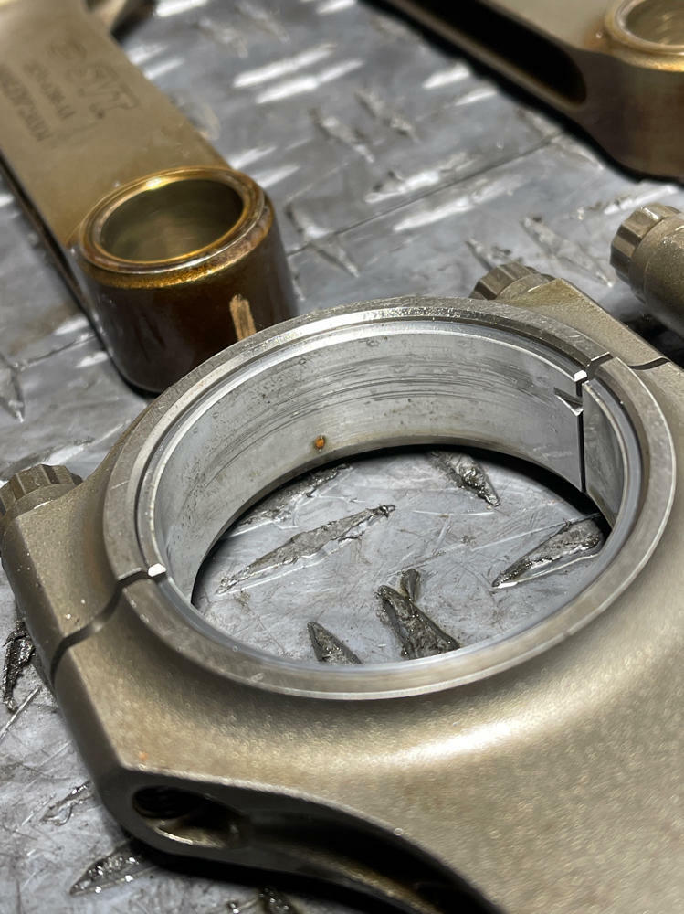 NOTE: Highly recommend replacing bearings as they are worn more on certain rods than others. Not completely trashed but wouldn't run again in another motor.