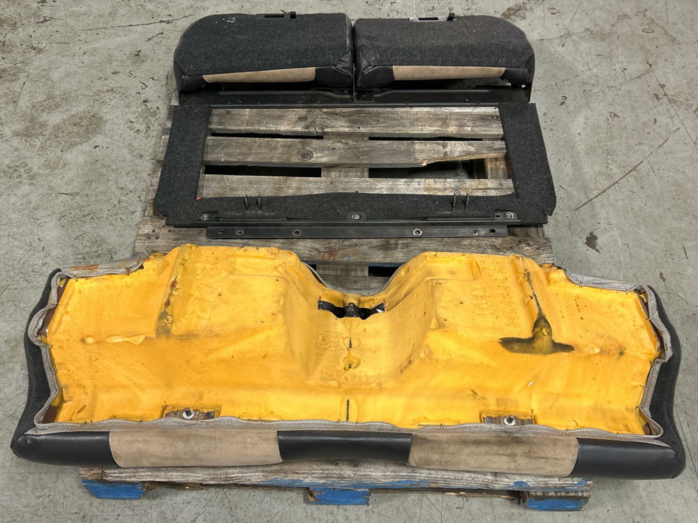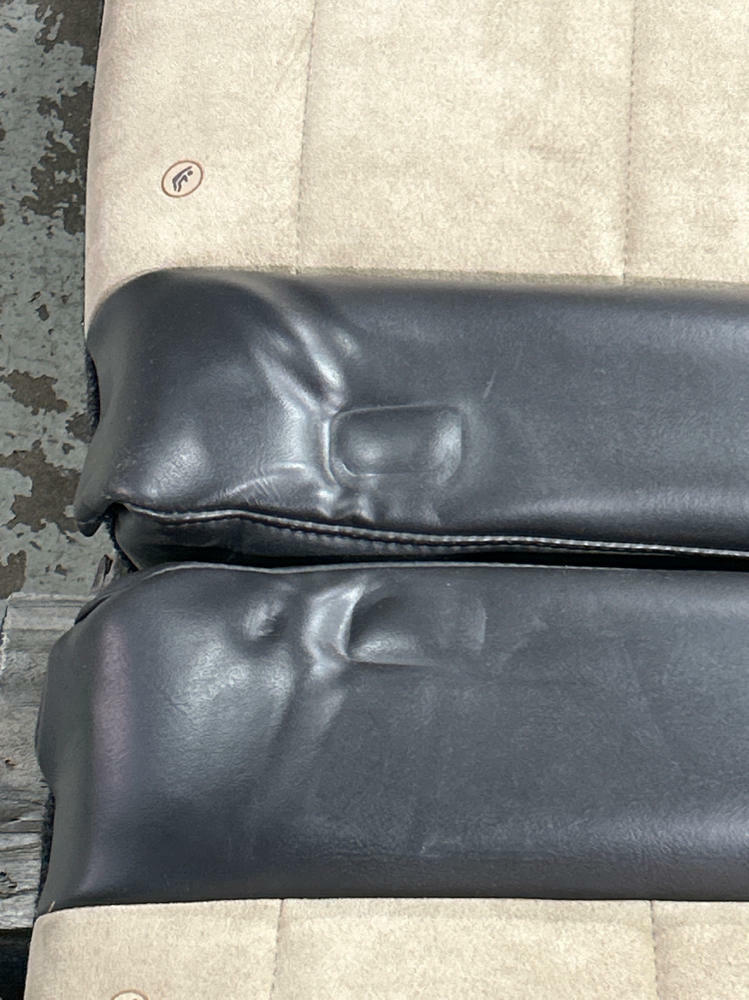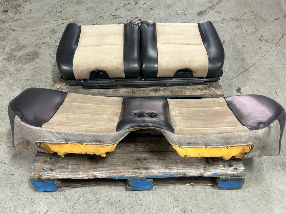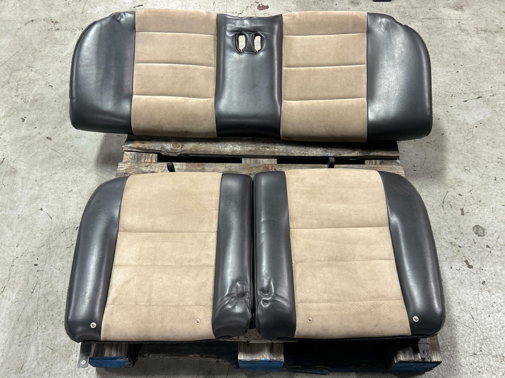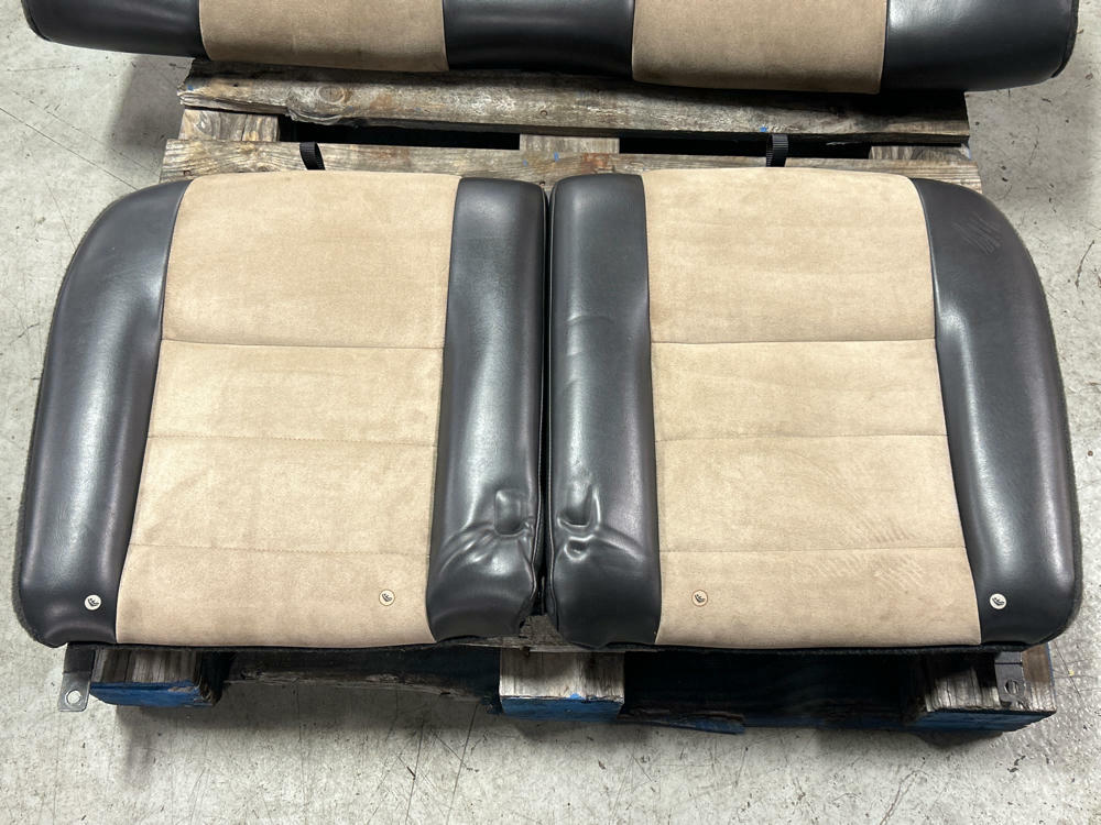 NOTE:Not perfect but very nice shape given the age. Don't see parchment sets pop up all that often anymore. Have some impressions on upper seat backs from where there were folded down on top of the buckles during transport. Should come out by itself over time; if not you can massage the foam back out with light amounts of heat and a bit of patience. Couple small nicks here and there but no rips, tears, or burns on the seats. Fold down and function as they should. Passenger side upper pops off sometimes as it is missing a bolt on the lower pivot point. Super nice shape for 20+ years old!