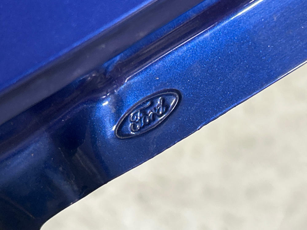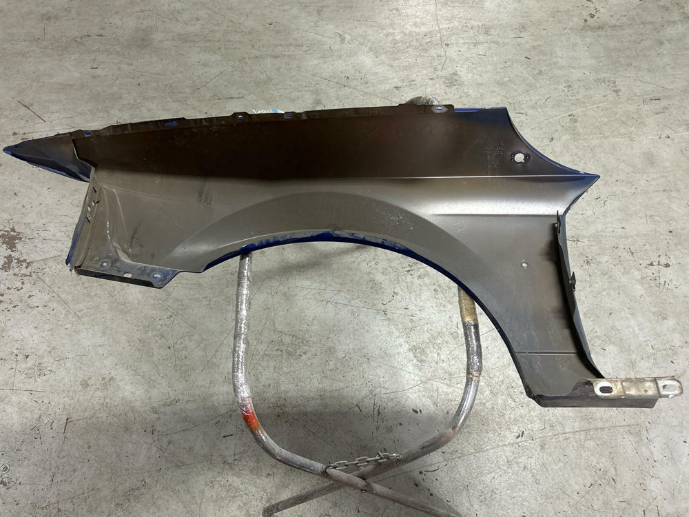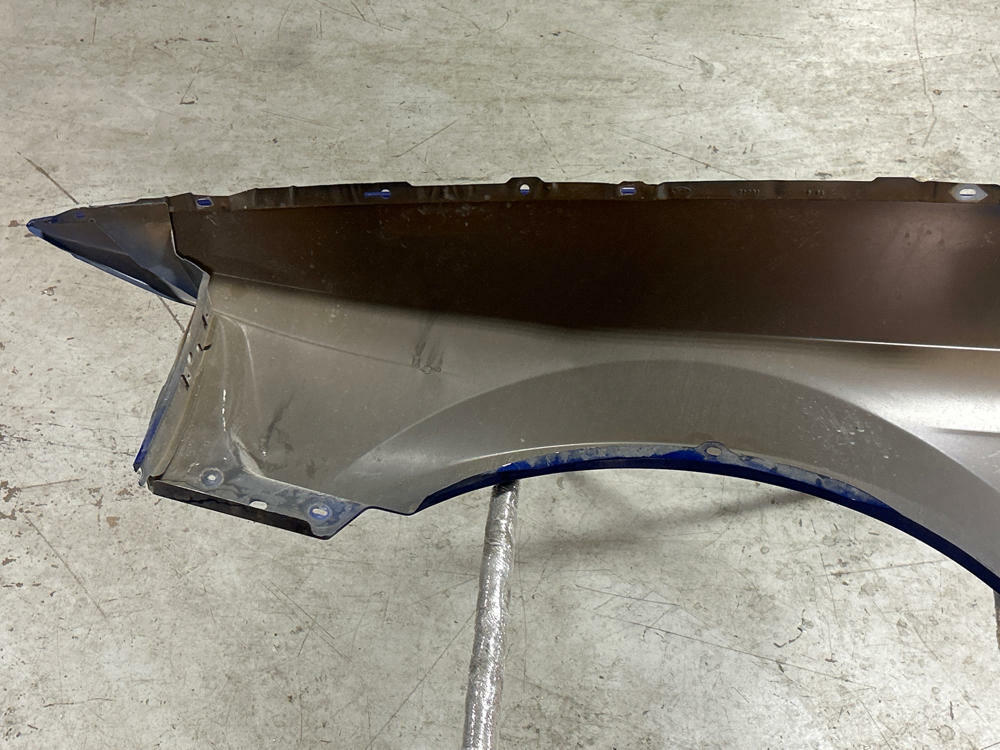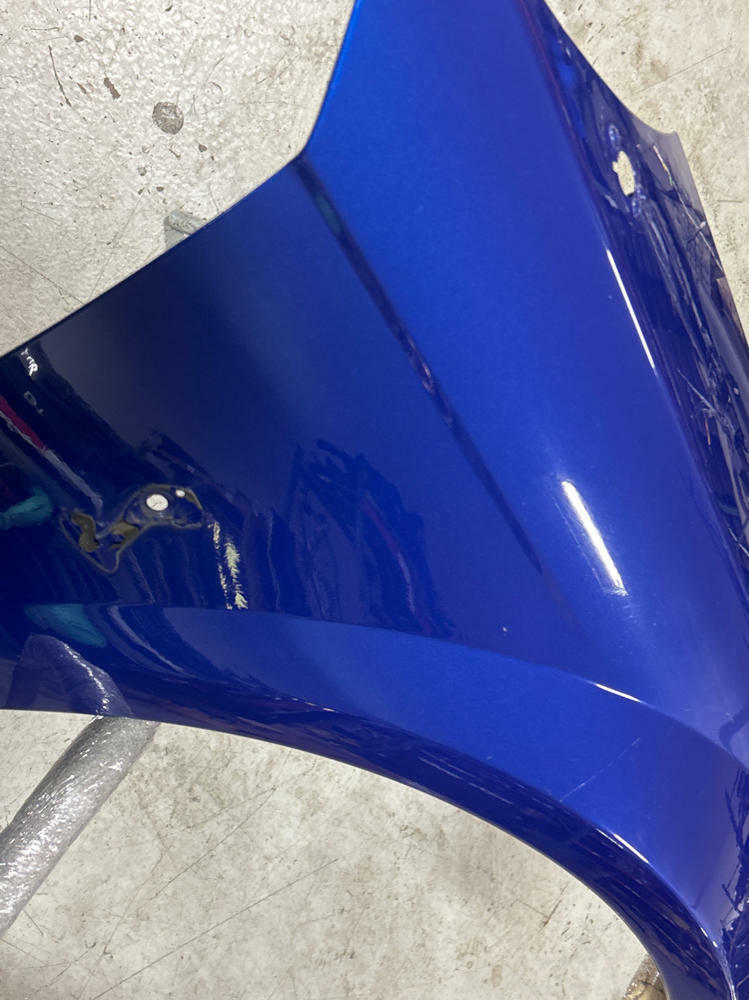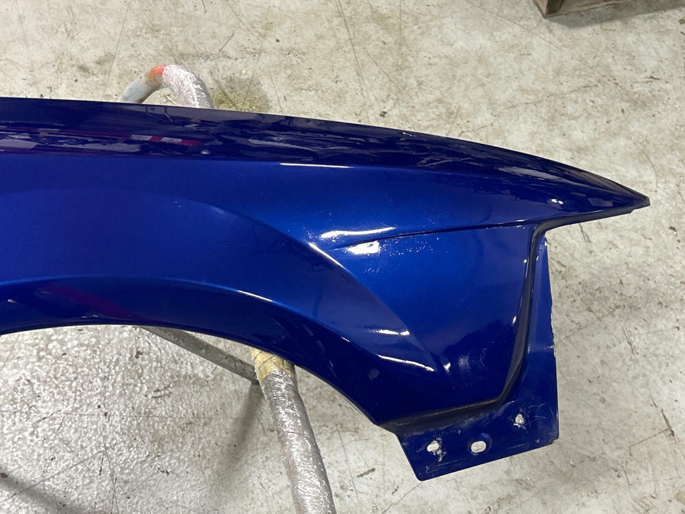 OEM Fender but really junk job on the respray. Orange peeled in areas, pimpling, etc. Couple of scratches and swirls. Left factory as true Sonic Blue fender however! No rot or major dings/dents. NO FENDER BADGE INCLUDED.