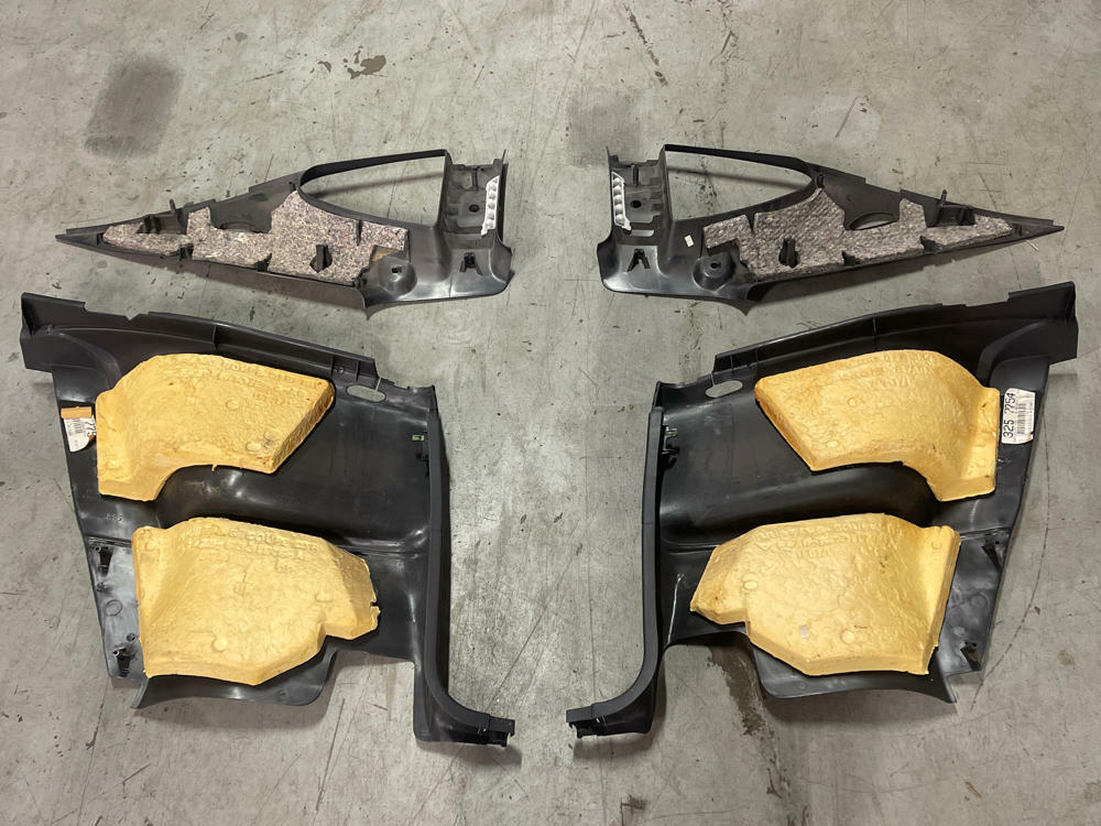 NOTE: Really nice shape given the age and mileage. No noticeable scars, gashes, etc. Mounting points on the back are all intact for the most part, a couple have seen better days but were still securely mounted in the car. See last pic in the set as one of the backing foam pieces removed itself. Glue just gets dry and brittle after 20 years. Can easily be glued back on.